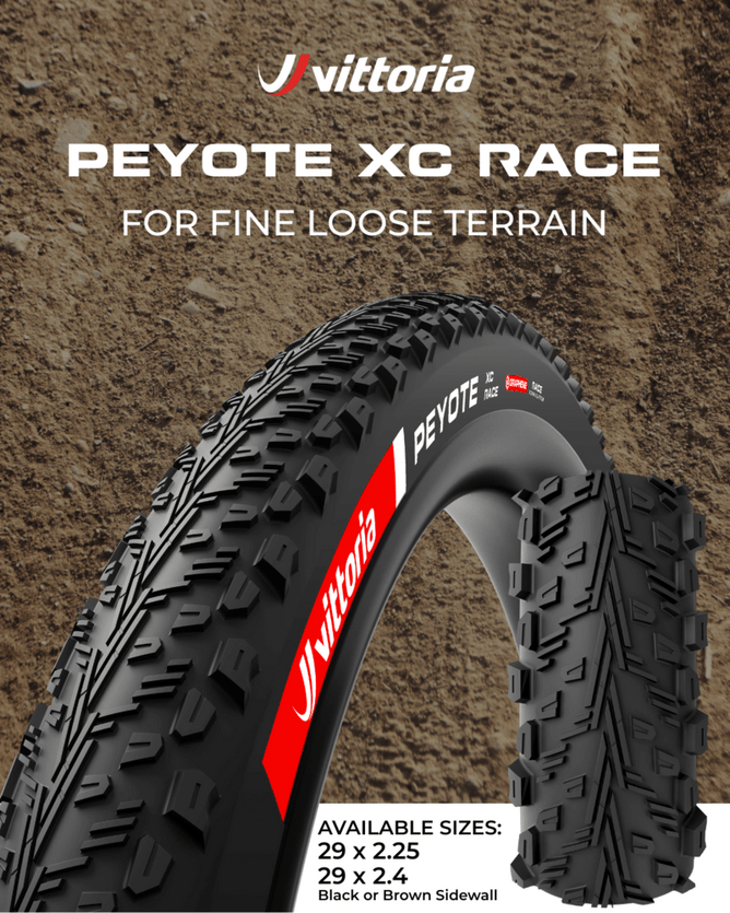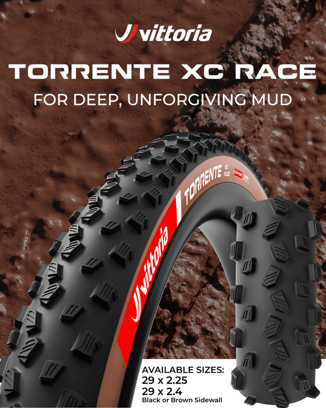The updated XC Race selection is led out by proven tread designs; Terreno, Peyote, Mezcal and Barzo, and is now completed with the new Torrente XC Race for muddy conditions. The World Champ and World Cup winning Vittoria XC Race line up helps riders excel on every terrain from hardpack to extreme wet, all aboard Vittoria's innovative, new race construction.
