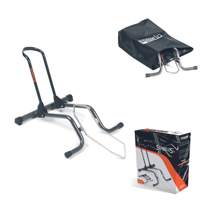 The universal bike stand allows you to park your bike with both the rear and front wheel ensuring safety and stability. Because only the tyres make contact with the stand, your frame, componentry and spokes are protected.