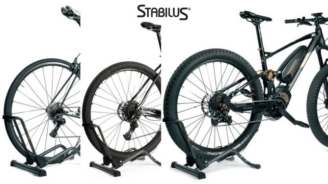 Stabilus 2.0® bike stand is suitable for all types of bike: from e-bikes to road bikes, distinguished by its innovative wheel support system with mechanical lever driven by the weight of the bike.