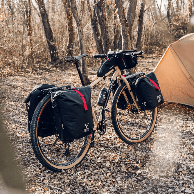 The Little Pannier (13L) can be mounted either on the front or the rear of your bike, although it is positioned best on the front, as its capacities and light weight mean that you won't have any problems with manoeuvrability and hovering weight on your front axle. It's the perfect addition for bikepacking trips where you rely on extra gear.