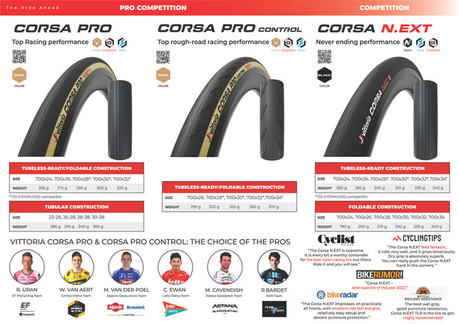 Being Corsa PRO and Corsa PRO Control for the most advanced and demanding riders, both tyres are available in Tubeless-Ready version, allowing in any case a very easy-to-install inner-tube configuration. Corsa PRO is already available in tubular version also.