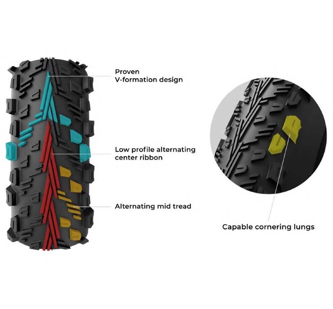The new Peyote shows 6% improvement in rolling performance compared to the previous XC Race casing version. When applied to a real-world scenario, this means that a Peyote rider will gain up to 1.5 km/h of average speed over the course of the race. These benefits are in addition to an 11% increase in grip (especially in wet), and improved puncture resistance.